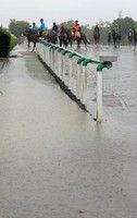 台風18号に伴う前日からの大雨で、午前5時開始の美浦トレセンの調教も困難を極めた。