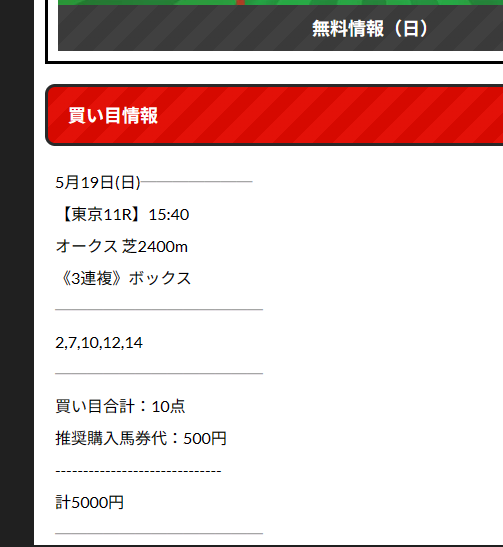 ※ ウマニキの公開された無料予想