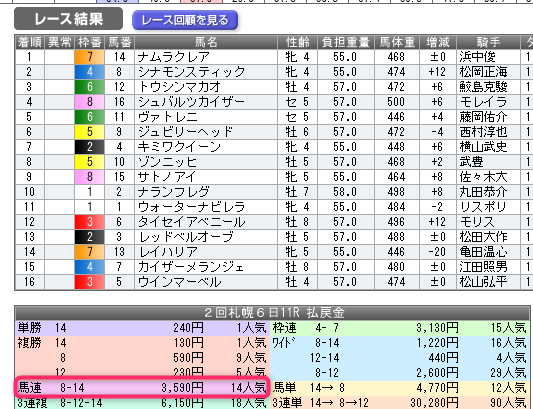 札幌芝1200mでは武豊騎手の安定感が際立ちます。