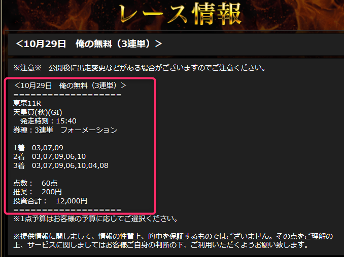 天皇賞秋無料予想的中(3連単的中俺の競馬)