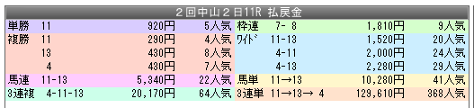 2025年、中山記念(1)過去10年1番人気の成績