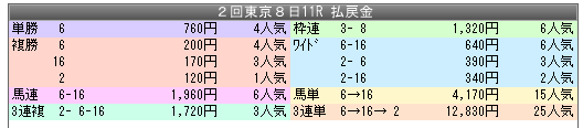 | キズナ | 1-1-0-7 / 9 | 11.10% | 22.20% | 84 |