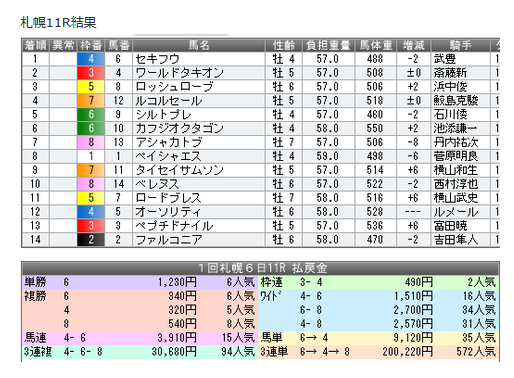 | 8 | ペイシャエス | 牡6 | 横山和生 |